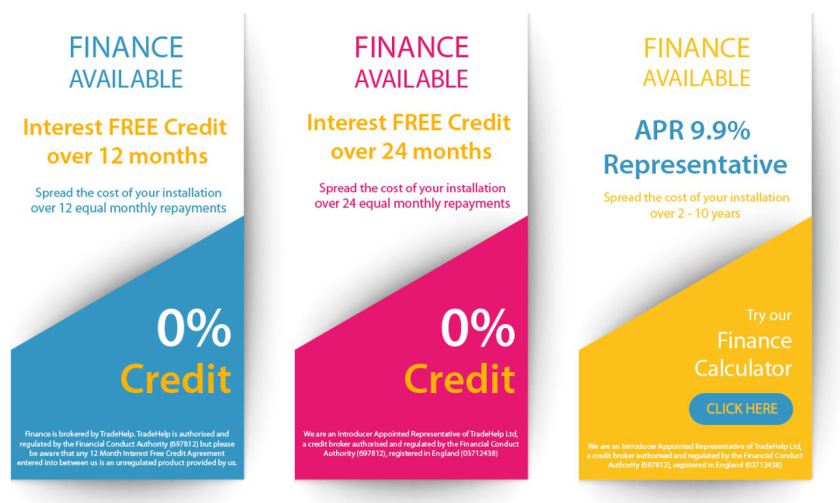 If you wish to spread the cost of your new installation, Flockhart Solutions Ltd can introduce you to TradeHelp Ltd. TradeHelp can offer monthly repayments through leading UK finance providers.